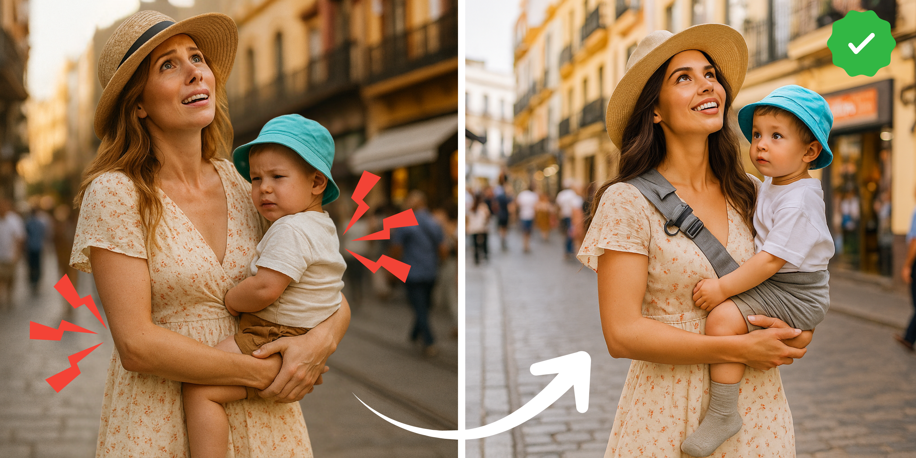 Lukas fühlt sich sicher an meiner Seite, und meine Hände sind frei für Emma.