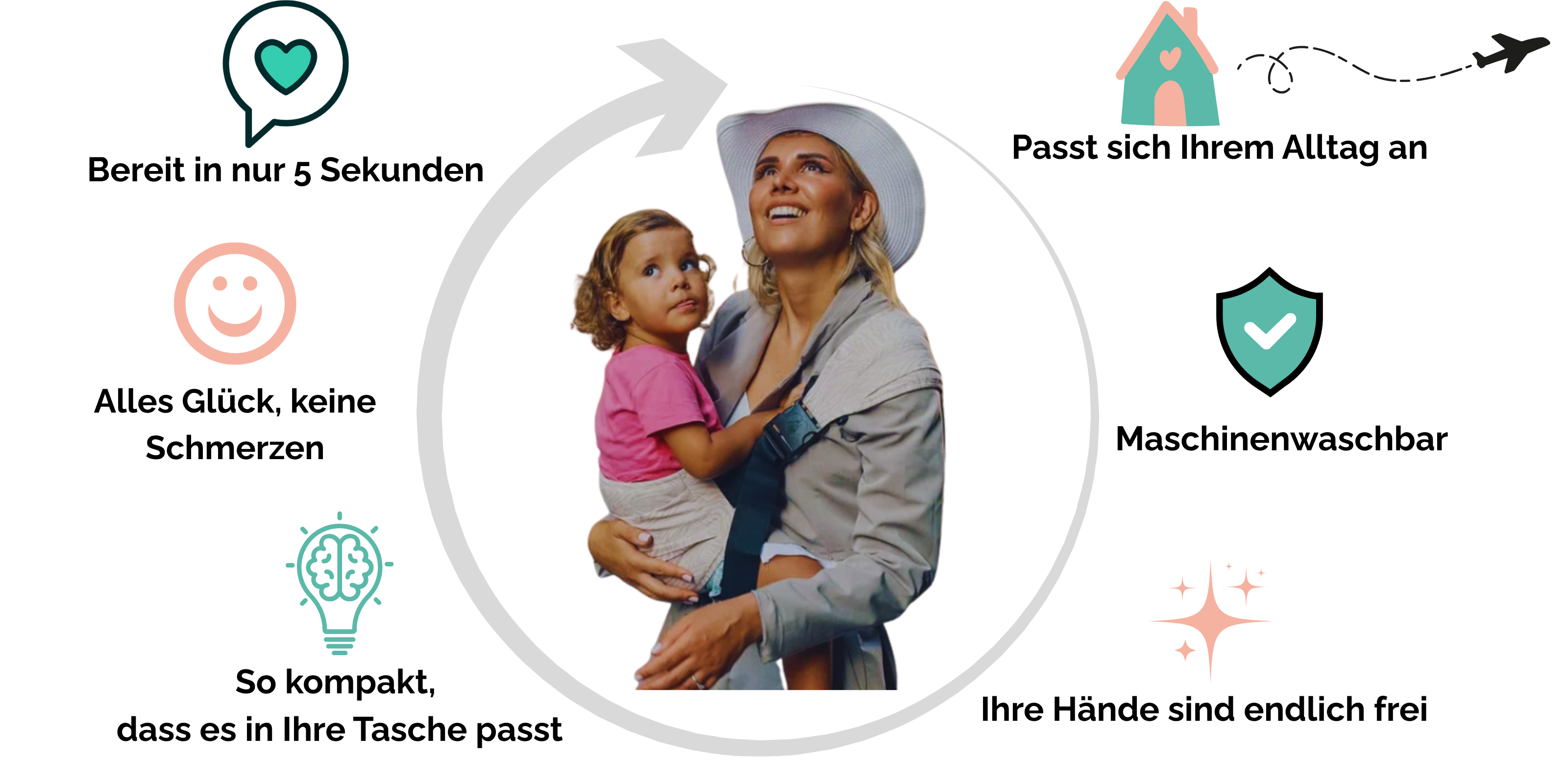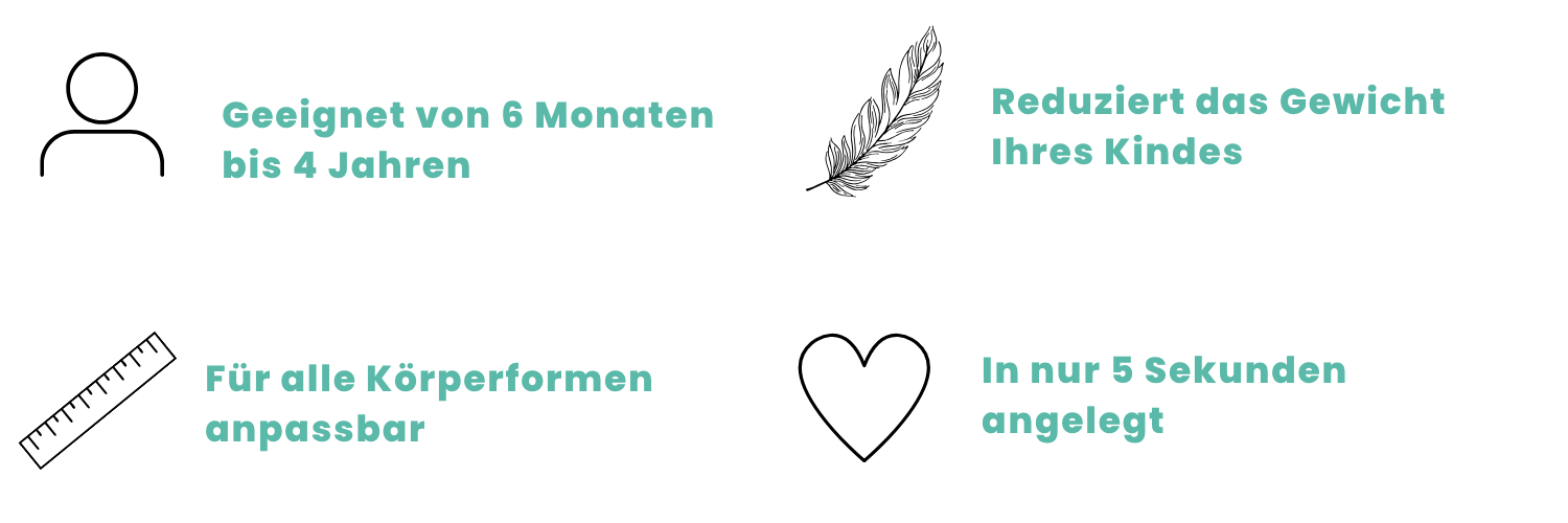 Sie ist perfekt für diese Übergangsphase, in der die Kleinen für eine Babytrage schon zu groß sind, aber trotzdem noch gern gehalten werden möchten.